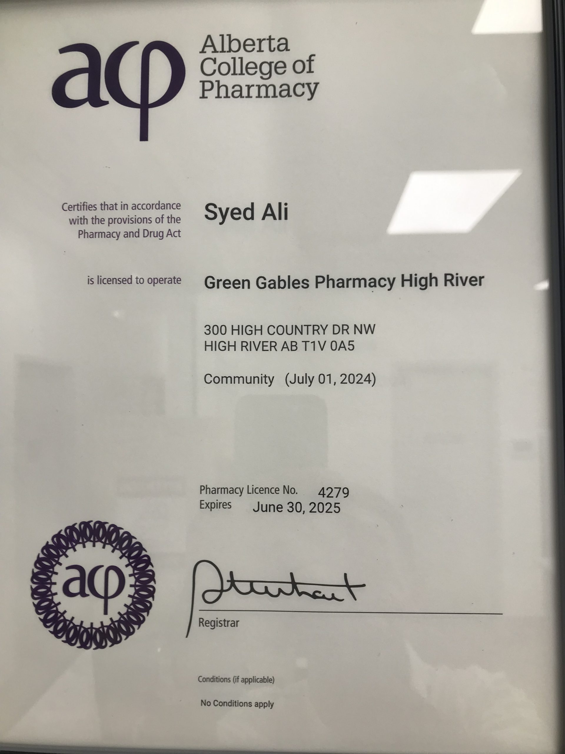 Green Gables High River Pharmacy is your one-stop local community pharmacy offering exceptional healthcare services for you and your family. We strive to meet your pharmacy needs, all in a helpful and friendly environment and through our dedicated staff. From seasonal flu shots to Covid vaccinations to prescription drug assistance and more, we take care of everything. We also provide, privately held medication reviews and free local delivery of prescription medication for High River customers.